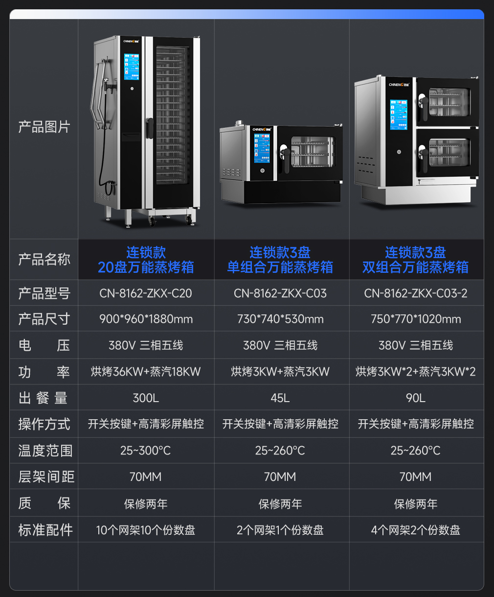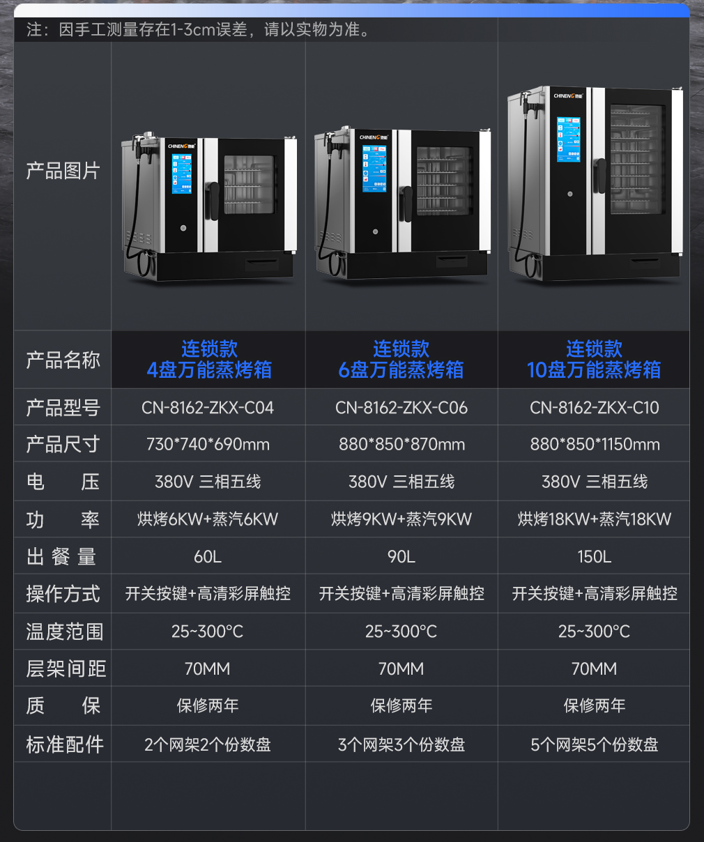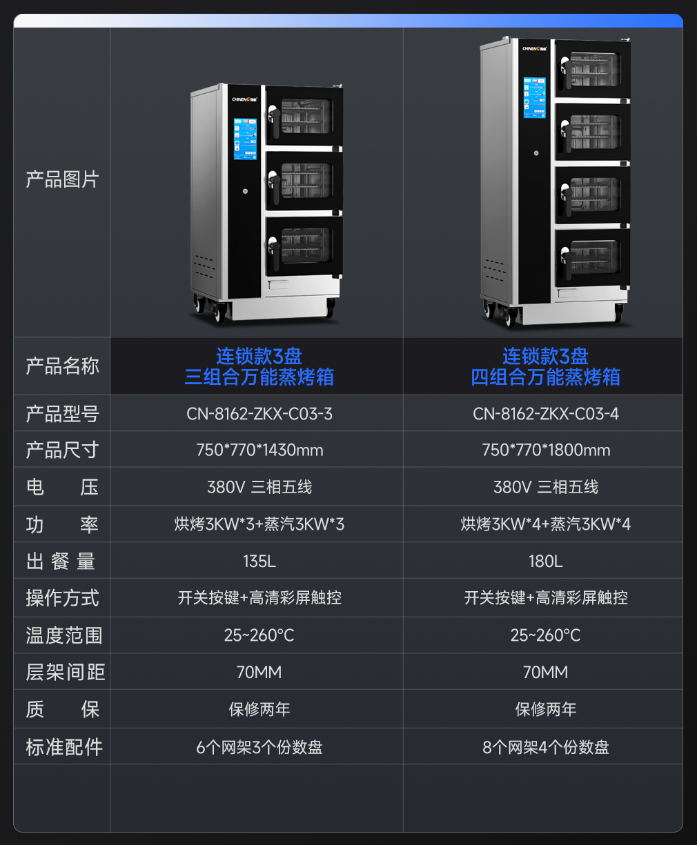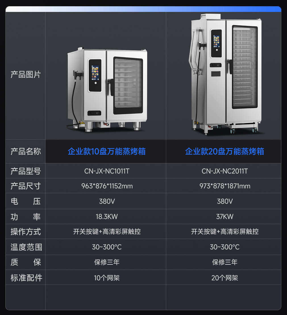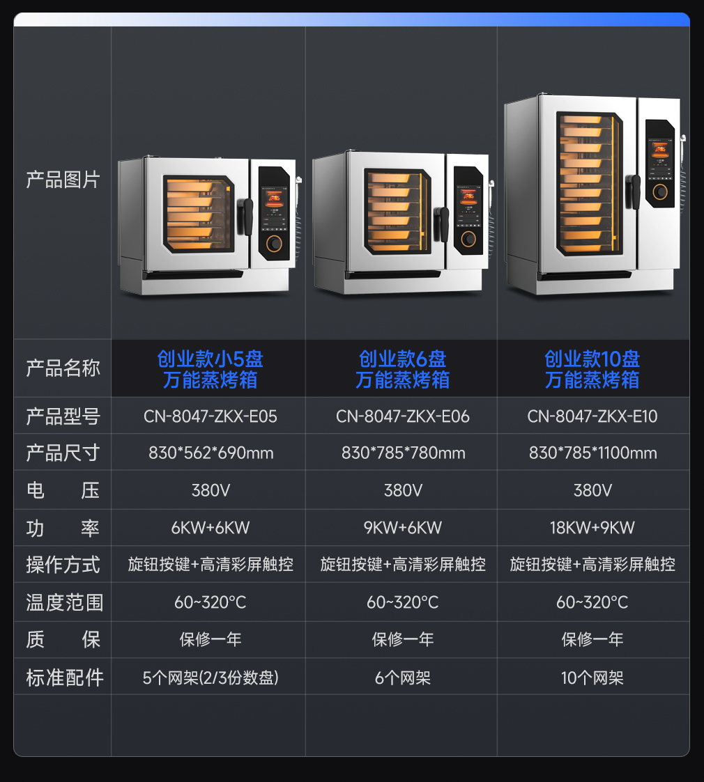 功率:?jiǎn)握?80v/9kw,單烤380v/10kw,蒸烤380v/9kw+10kw