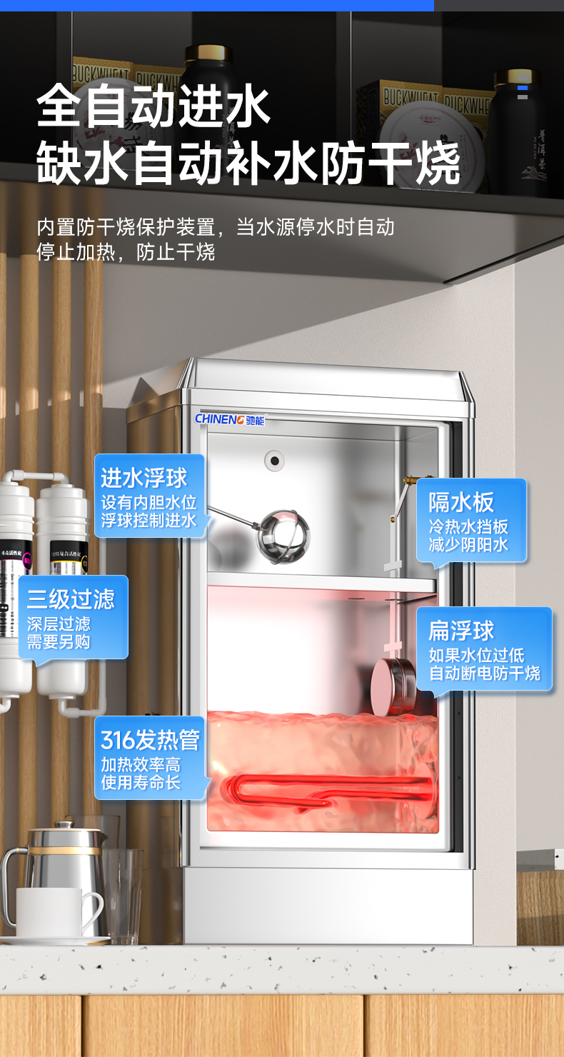 自動(dòng)進(jìn)水:缺水自動(dòng)補(bǔ)水防干燒