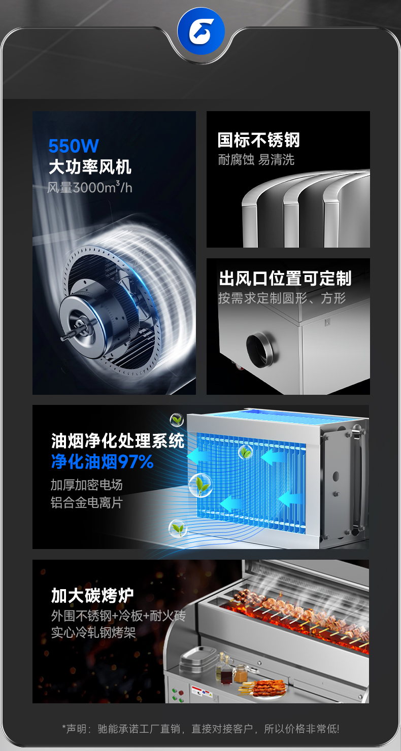 配置:風(fēng)機+凈化器*2+炭烤爐