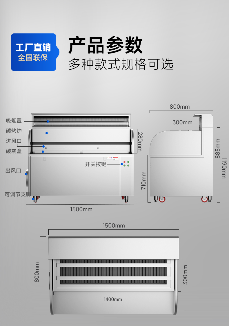 配置:風(fēng)機+凈化器*1+炭烤爐